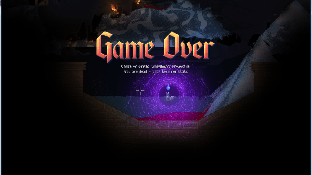 Noita Posted bythegoingrogueDecember 28, 2020December 28, 2020Posted inUncategorized I play the daily, daily. Some days are better than others. That’s a metaphor for life, friends. Noita’s “Game Over” screen. Share this: Share on X (Opens in new window) X Share on Facebook (Opens in new window) Facebook Like Loading... Related
